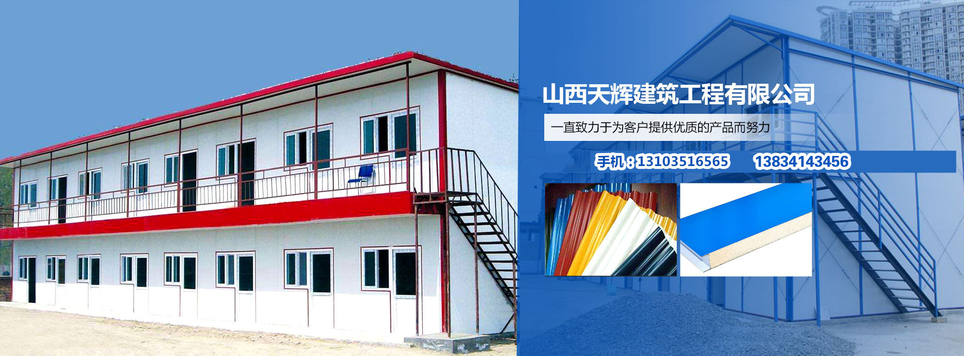 山西天輝建筑工程有限公司是專業(yè)從事彩鋼板生產(chǎn),鋼結構、住人集裝箱、活動房設計和專業(yè)安裝、維護的一家企業(yè),我們銷售的產(chǎn)品引進全自動彩鋼夾芯板流水線以銷售多種規(guī)格的彩鋼復合夾芯板...